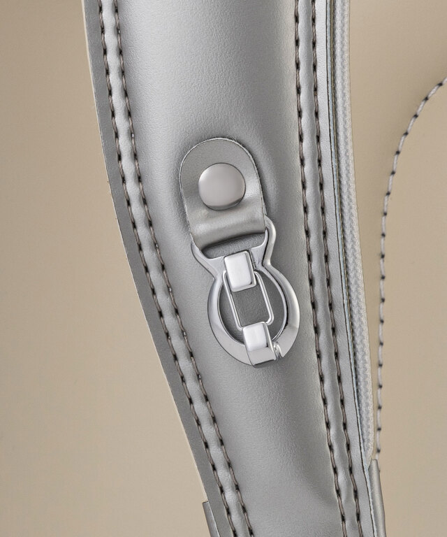 持ち手:収納や持ち運びに便利な持ち手付き。肩ベルトナスカン:防犯ブザーに手が伸ばしやすい肩ベルトにナスカンを装備。
