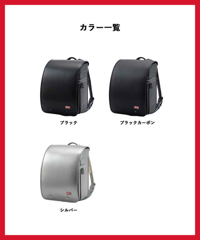 | 素材 | 主素材:クラリーノ®タフロック®NEO/クラリーノ®レミニカ®/クラリーノ®エフ 背カン:ウイング背カン 補強(口前):パワフルガード 反射素材:前締め/肩ベルトに搭載 錠前:カラーワンタッチV錠前 |