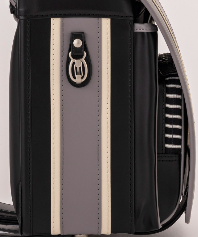 肩ベルトDカン:防犯ブザーに手が伸ばしやすい肩ベルトにDカンを装備。