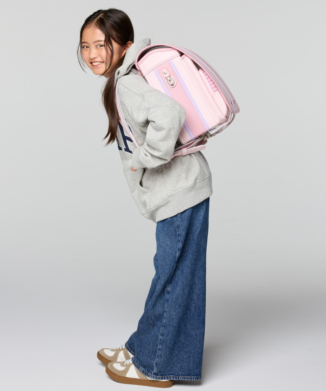 車のライトなどに反射する反射材を、カブセ表、持ち手、前締めベルト、肩ベルトに搭載。下校時など、暗い道での安全をサポート。