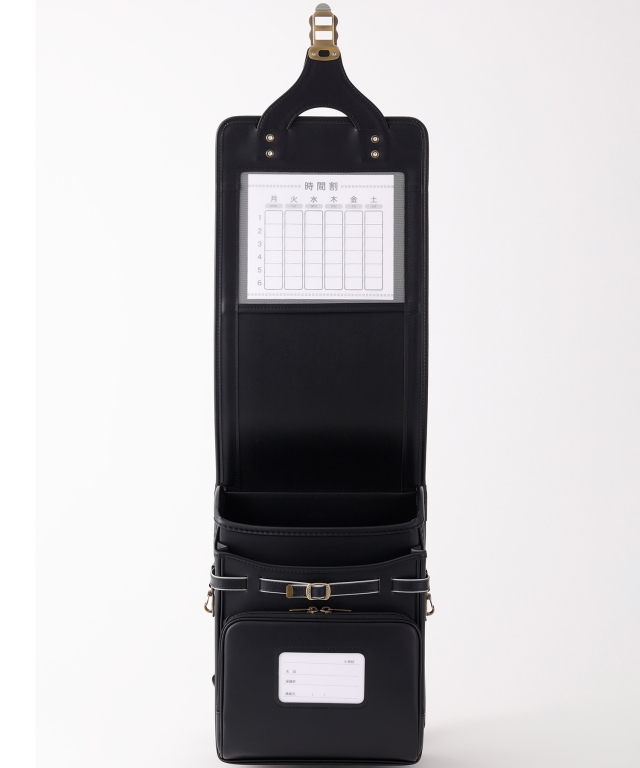 たくさんの教科書などを入れる「大マチ」内部には、樋口鞄工房特注の樹脂素材とコーナー部分のオリジナル補強材を貼り合わせた二層構造の芯材を使用し、しっかりと強度を確保しました。