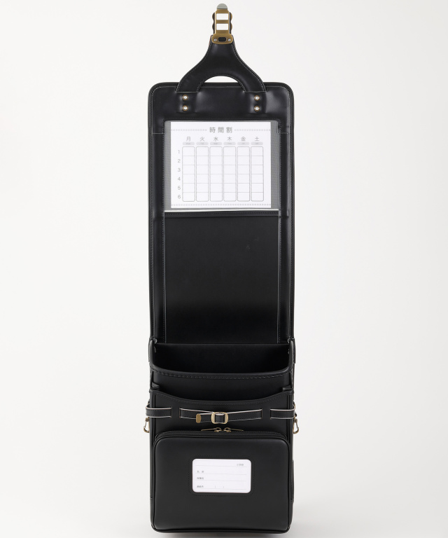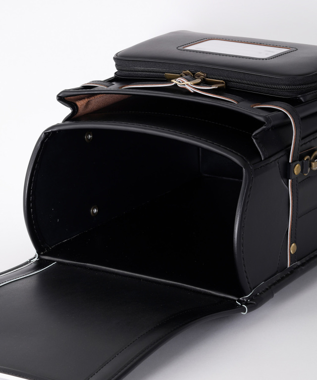 たくさんの教科書などを入れる「大マチ」内部には、樋口鞄工房特注の樹脂素材とコーナー部分のオリジナル補強材を貼り合わせた二層構造の芯材を使用し、しっかりと強度を確保しました。