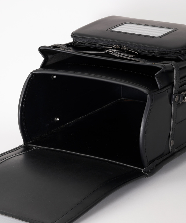 たくさんの教科書などを入れる「大マチ」内部には、樋口鞄工房特注の樹脂素材とコーナー部分のオリジナル補強材を貼り合わせた二層構造の芯材を使用し、しっかりと強度を確保しました。
