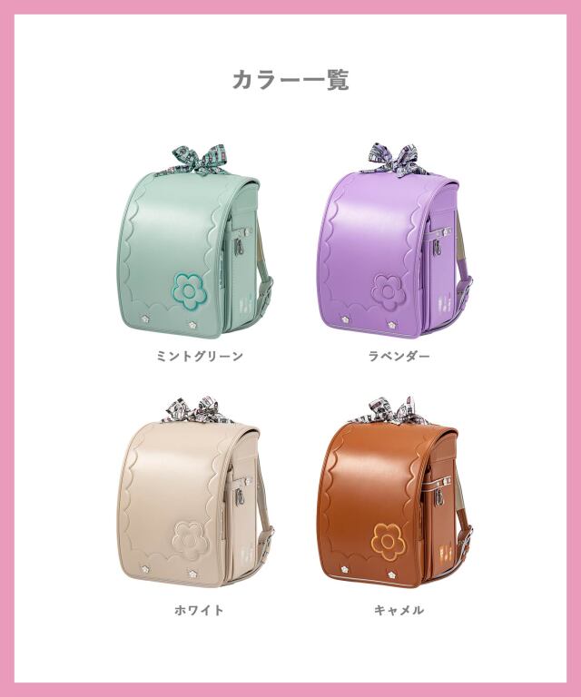 | 主素材 | クラリーノ®エフ 背カン:ウイング背カン 補強(口前):パワフルガード® 反射素材:カブセ表/前締め/肩ベルトに搭載 錠前:H2錠前 |