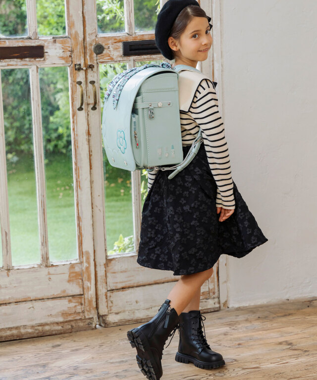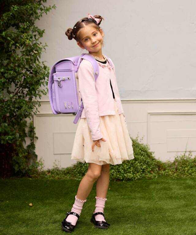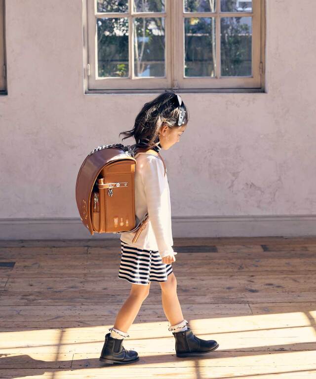 車のライトなどに反射する反射材を、カブセ表、前締め、肩ベルトに搭載。下校時など、暗い道での安全をサポート。