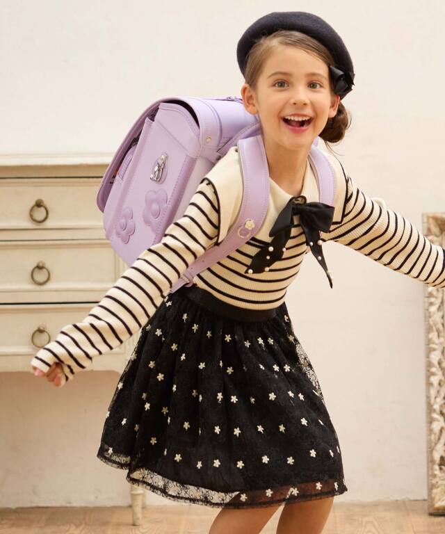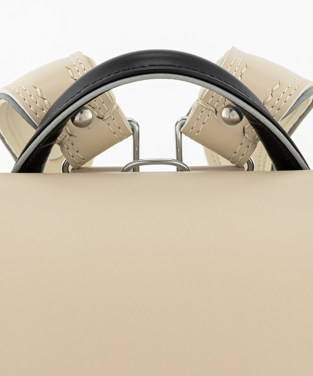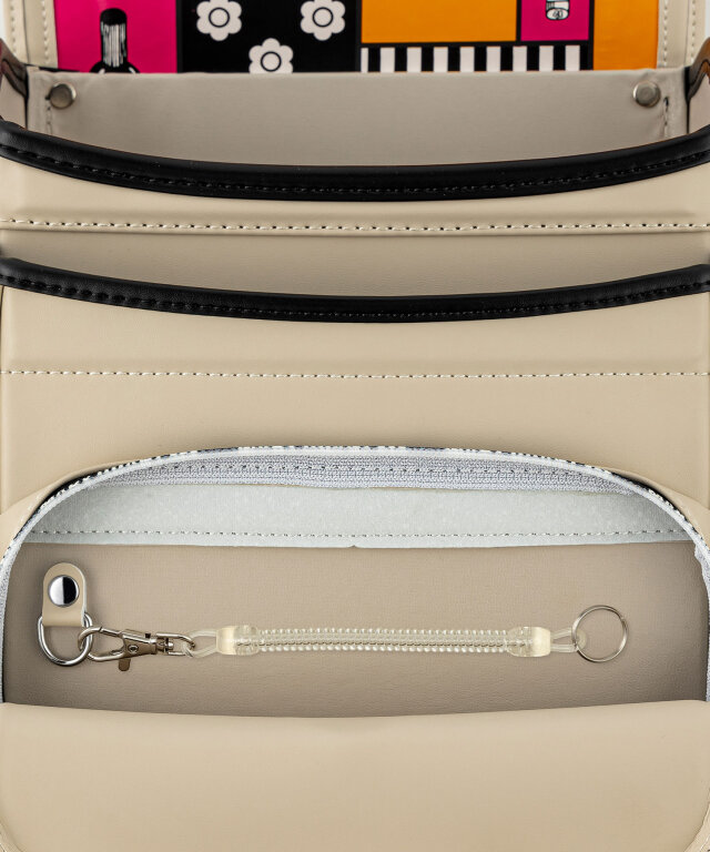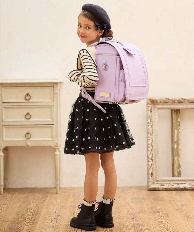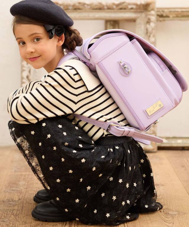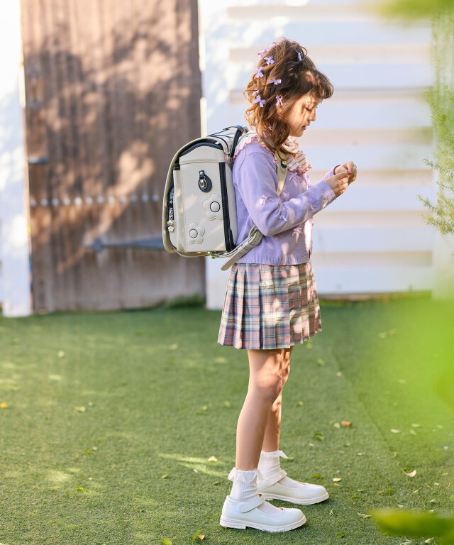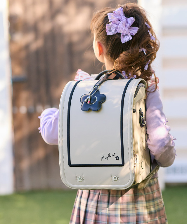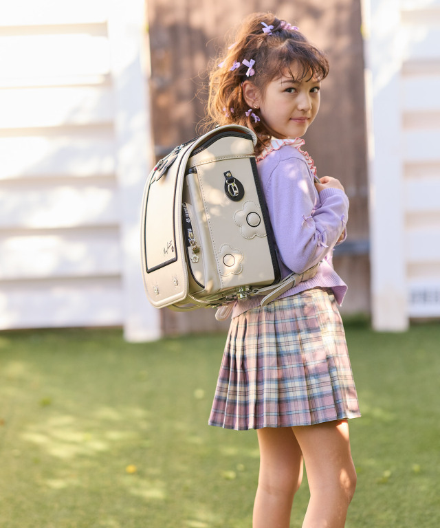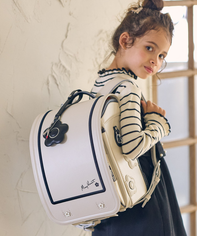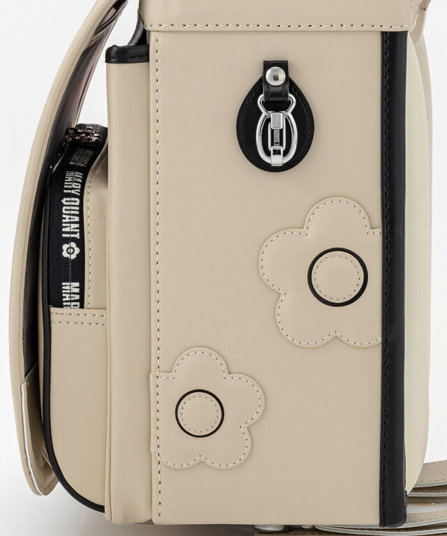 金具を押すだけで自動的に鍵が閉まるオートロック錠前を搭載。施錠の手間を省き、締め忘れをゼロに。肩ベルト底面のダルマカン部分が左右に動かせる仕様になっているため、成長や体型、服の厚みに合わせてフィットしやすく、背負う際にもらくに腕を通せます。
