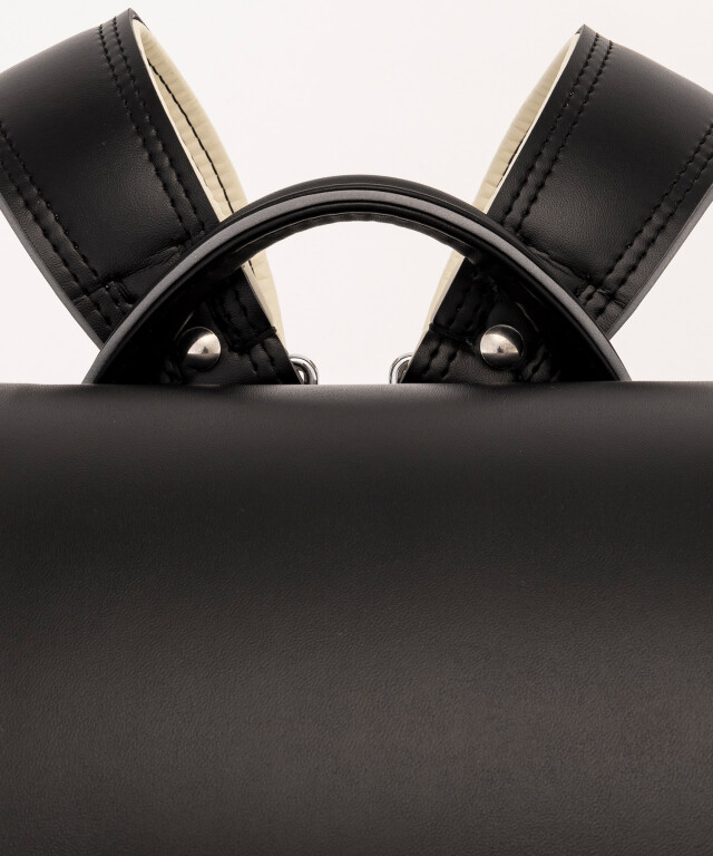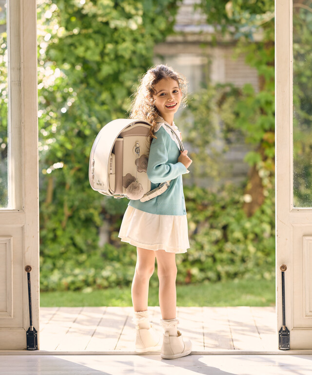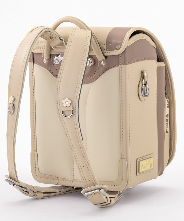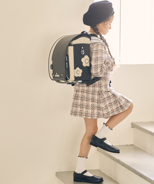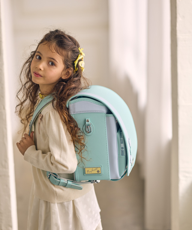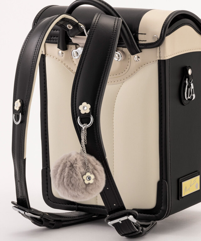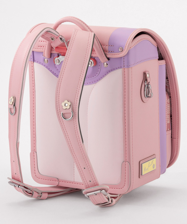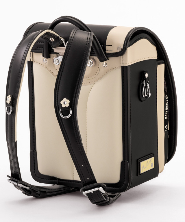 金具を押すだけで自動的に鍵が閉まるオートロック錠前を搭載。施錠の手間を省き、締め忘れをゼロに。肩ベルト底面のダルマカン部分が左右に動かせる仕様になっているため、成長や体型、服の厚みに合わせてフィットしやすく、背負う際にもらくに腕を通せます。