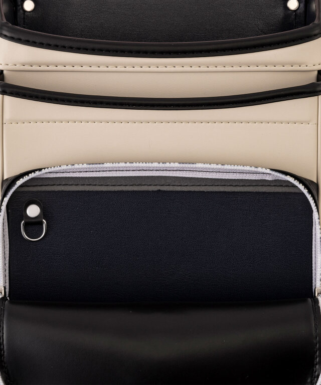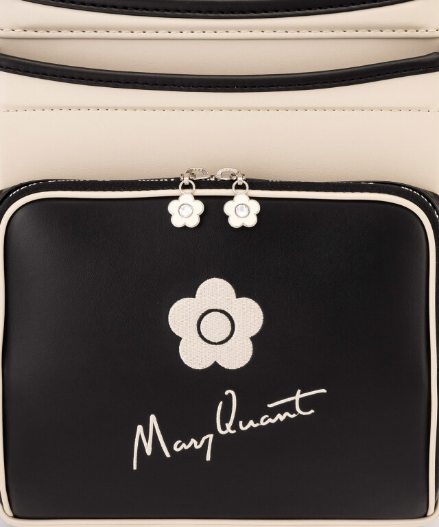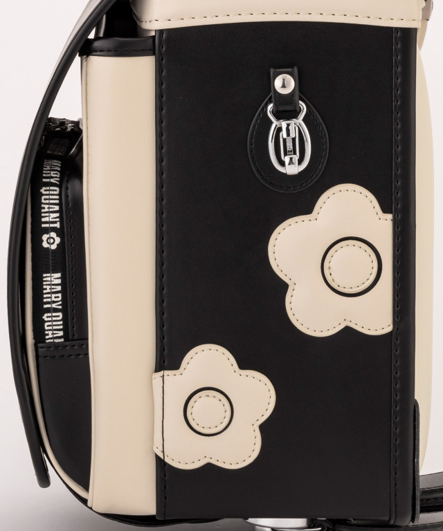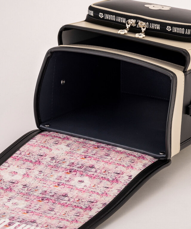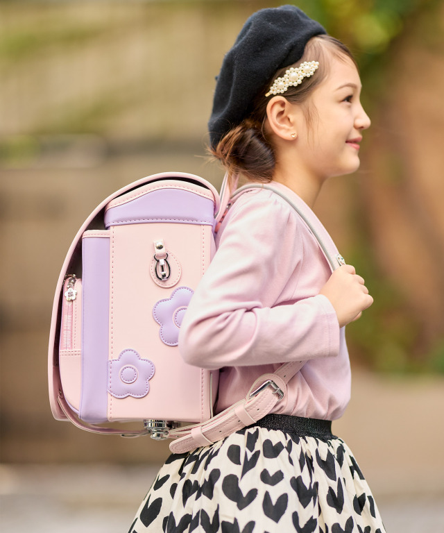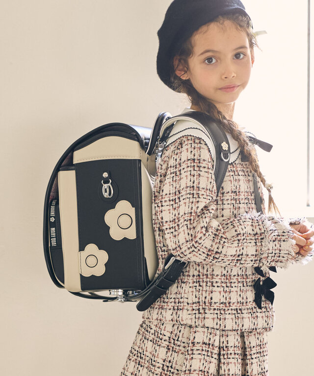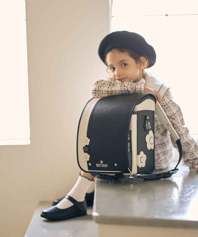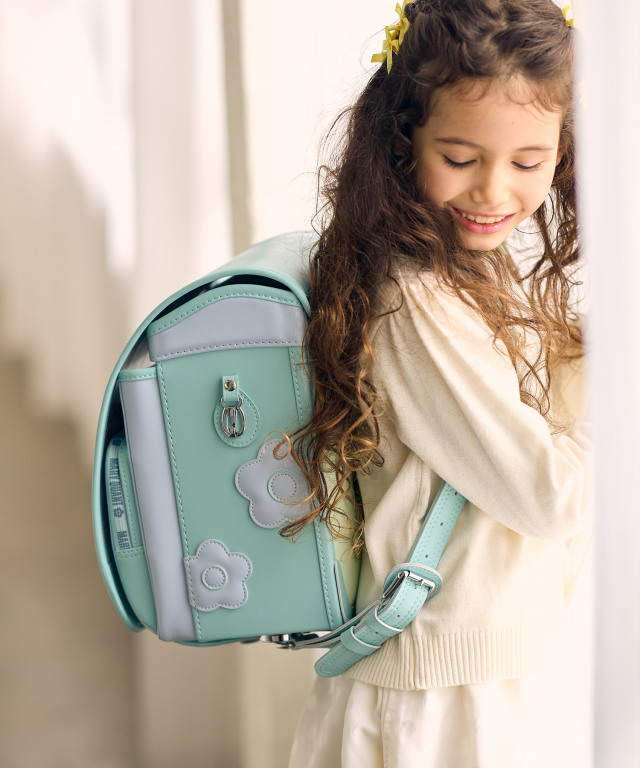 金具を押すだけで自動的に鍵が閉まるオートロック錠前を搭載。施錠の手間を省き、締め忘れをゼロに。肩ベルト底面のダルマカン部分が左右に動かせる仕様になっているため、成長や体型、服の厚みに合わせてフィットしやすく、背負う際にもらくに腕を通せます。