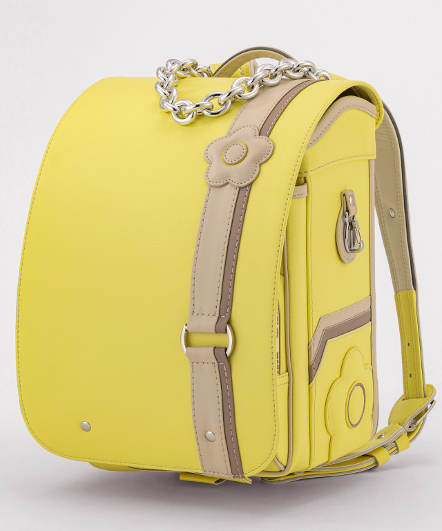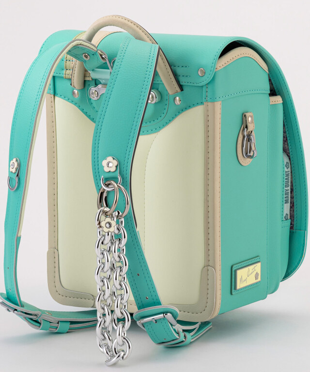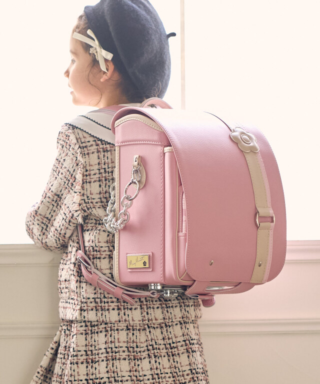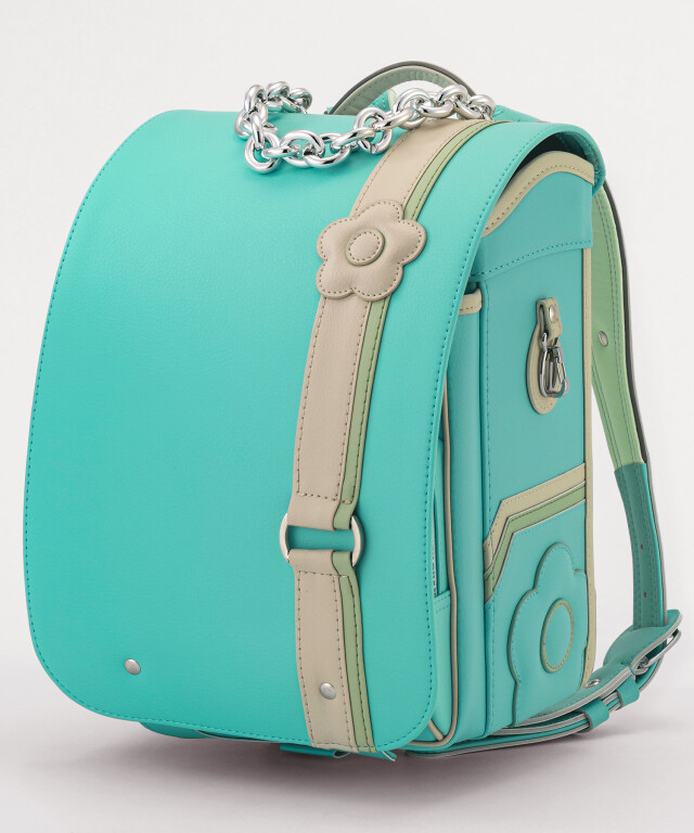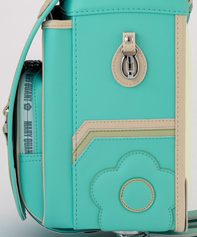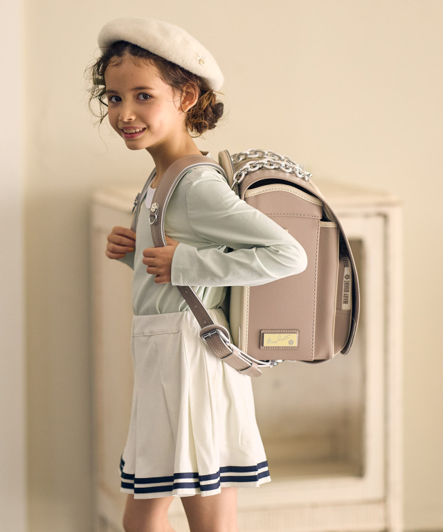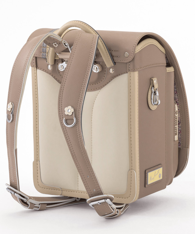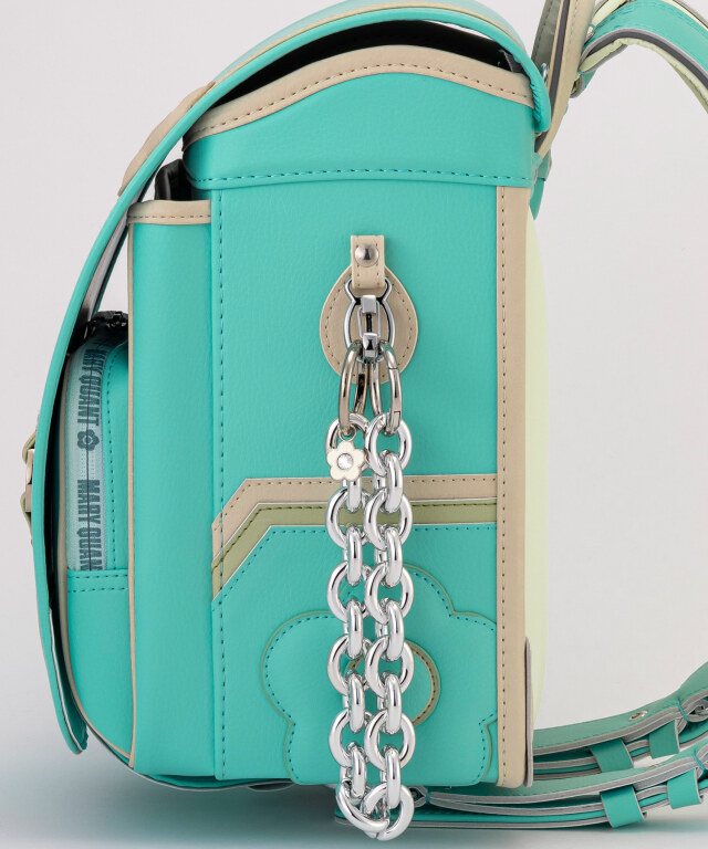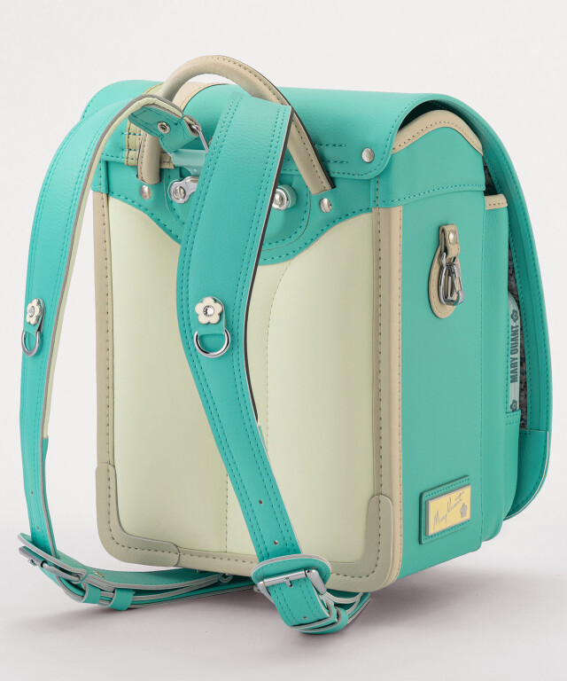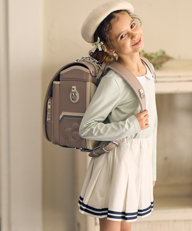金具を押すだけで自動的に鍵が閉まるオートロック錠前を搭載。施錠の手間を省き、締め忘れをゼロに。肩ベルト底面のダルマカン部分が左右に動かせる仕様になっているため、成長や体型、服の厚みに合わせてフィットしやすく、背負う際にもらくに腕を通せます。