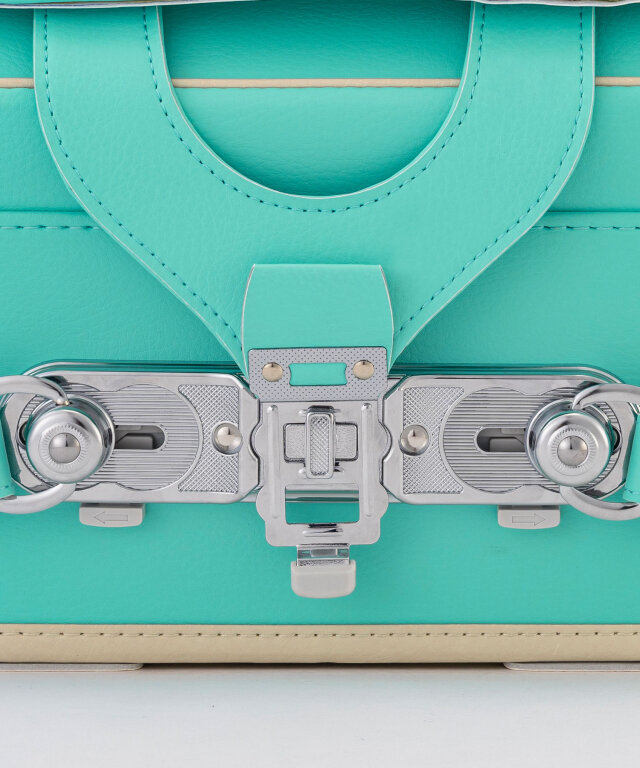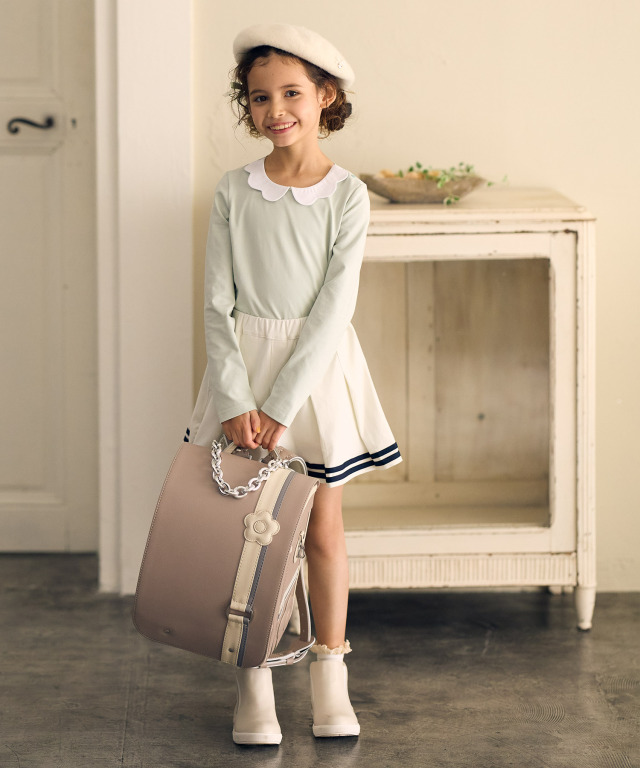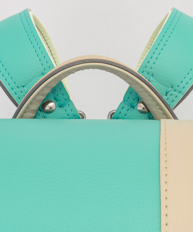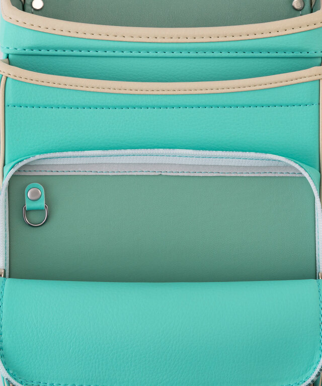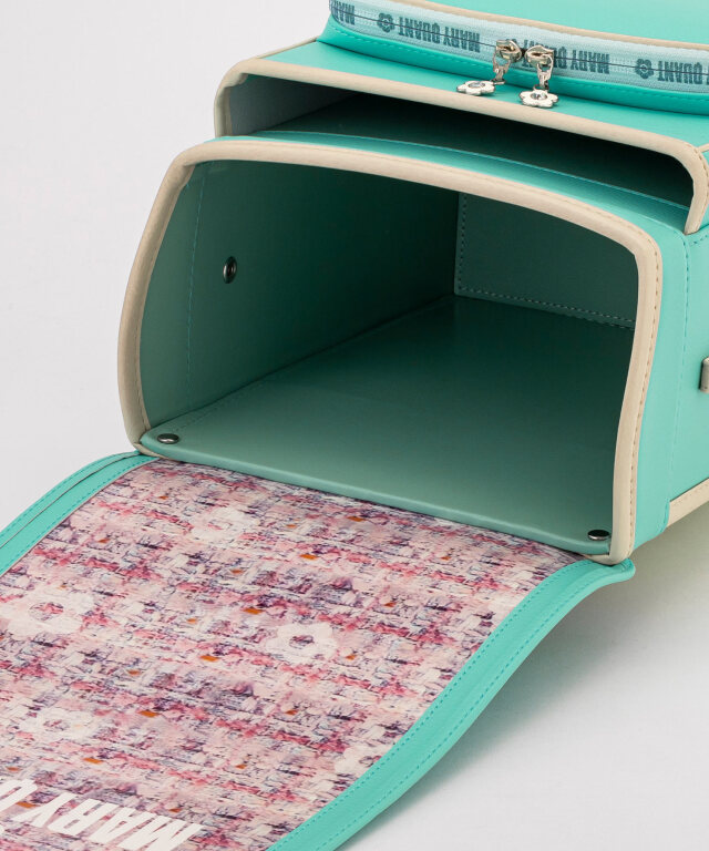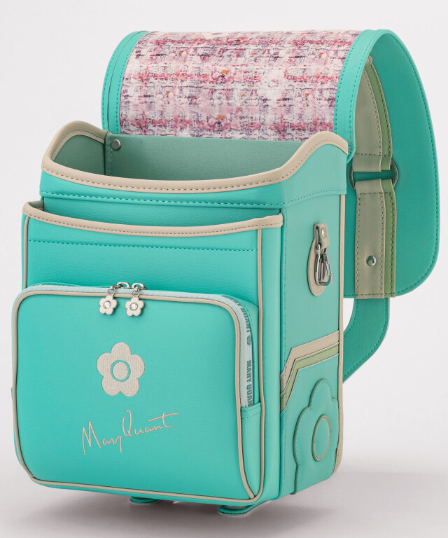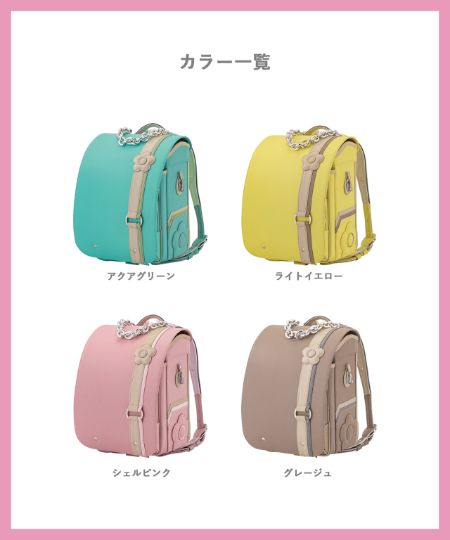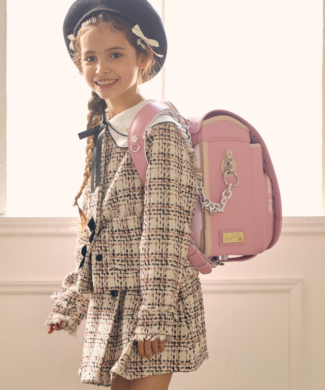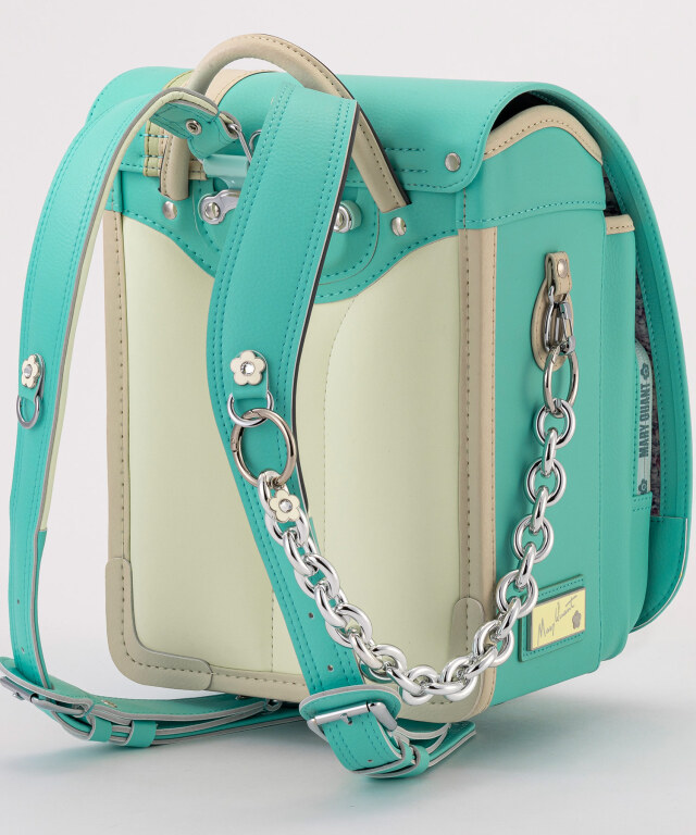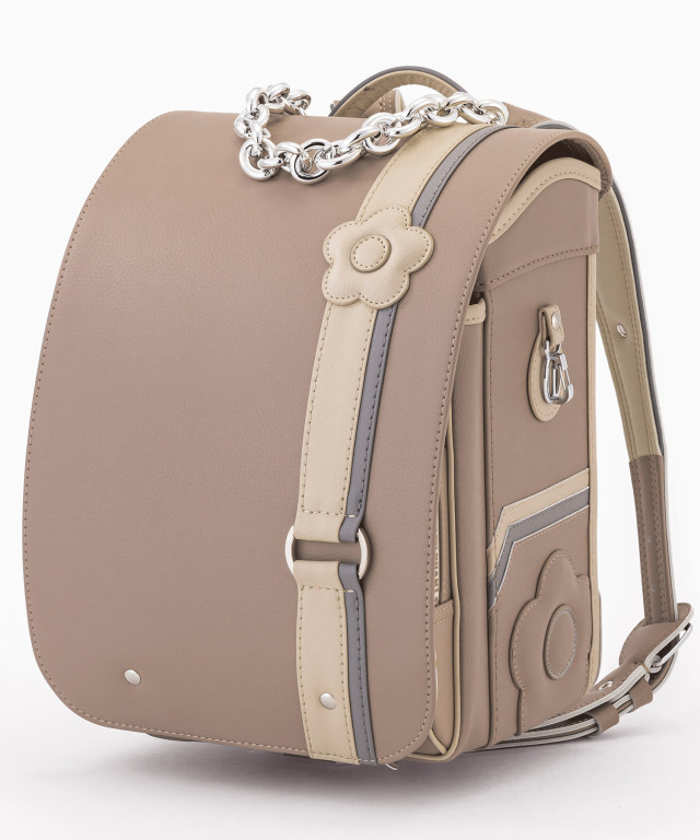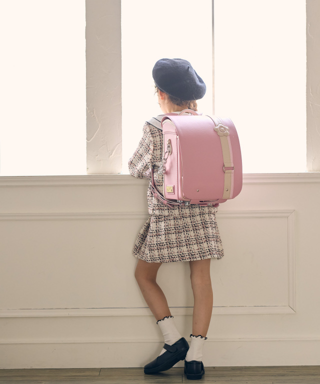 金具を押すだけで自動的に鍵が閉まるオートロック錠前を搭載。施錠の手間を省き、締め忘れをゼロに。肩ベルト底面のダルマカン部分が左右に動かせる仕様になっているため、成長や体型、服の厚みに合わせてフィットしやすく、背負う際にもらくに腕を通せます。