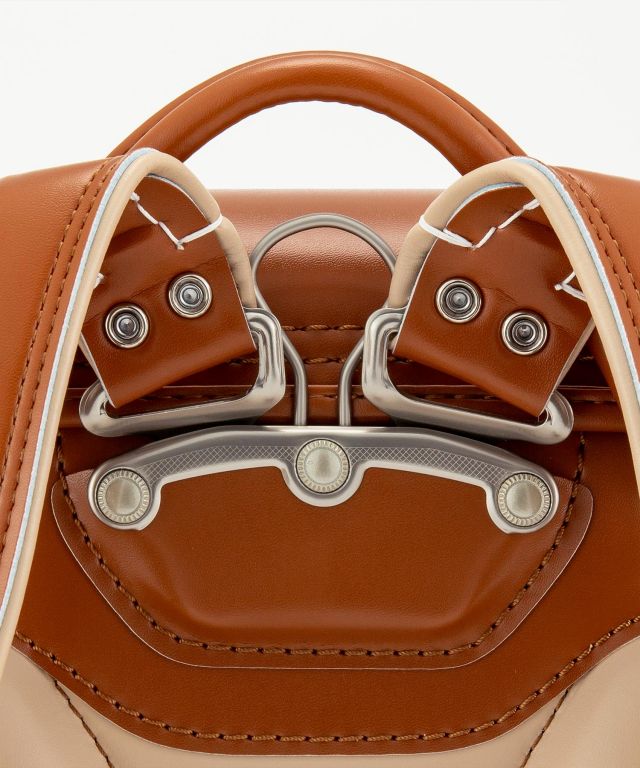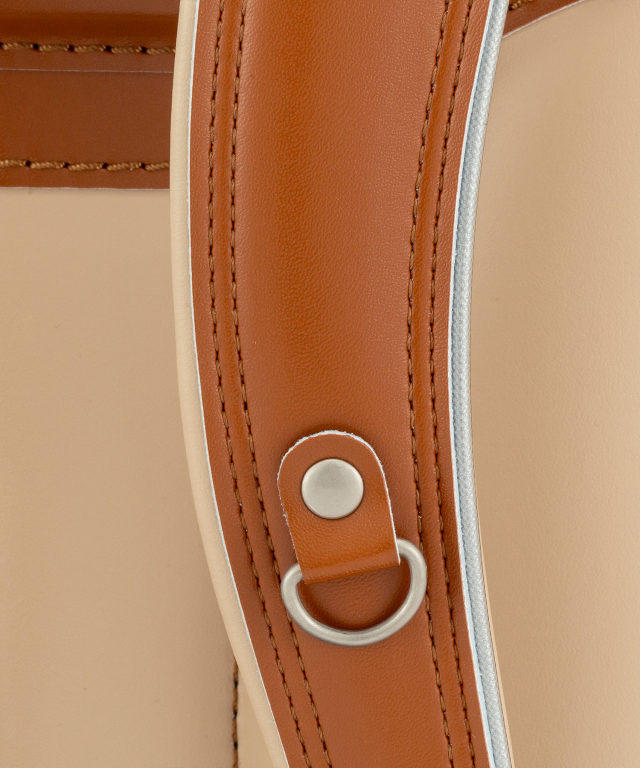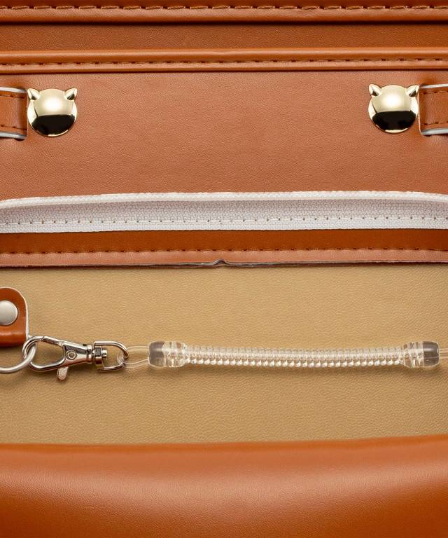 | 主素材 | 主素材:クラリーノ®エフ 背カン:フィットちゃん® 補強(口前):しっかりくん® 反射素材:持ち手/前締め/肩ベルトに搭載 錠前:ミラくるっロック® |