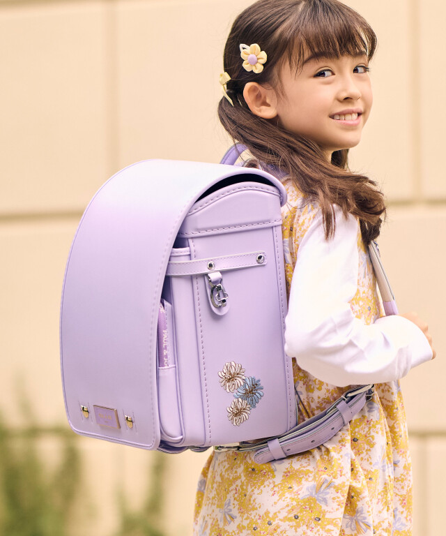 金具を押すだけで自動的に鍵が閉まるミラくるっロック®を搭載。施錠の手間を省き、締め忘れをゼロに。肩ベルト底面のダルマカン部分が左右に動かせる仕様になっているため、成長や体型、服の厚みに合わせてフィットしやすく、背負う際にもらくに腕を通せます。