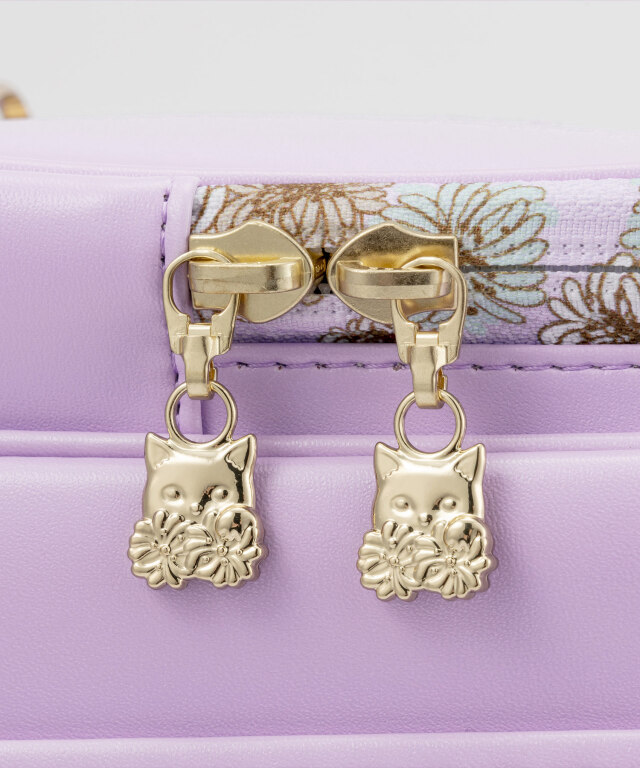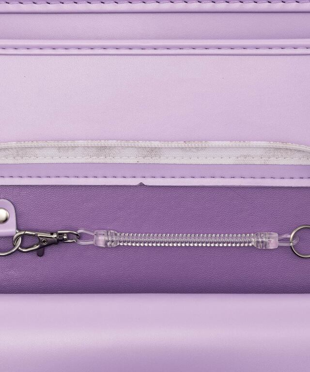 持ち手:収納や持ち運びに便利な持ち手付き。肩ベルトDカン:防犯ブザーに手が伸ばしやすい肩ベルトにDカンを装備。内ポケット伸縮フック:ファスナーポケット内部に、伸縮性のあるフックを搭載。家の鍵などが見つかりやすく、紛失しにくい仕様に。