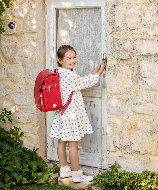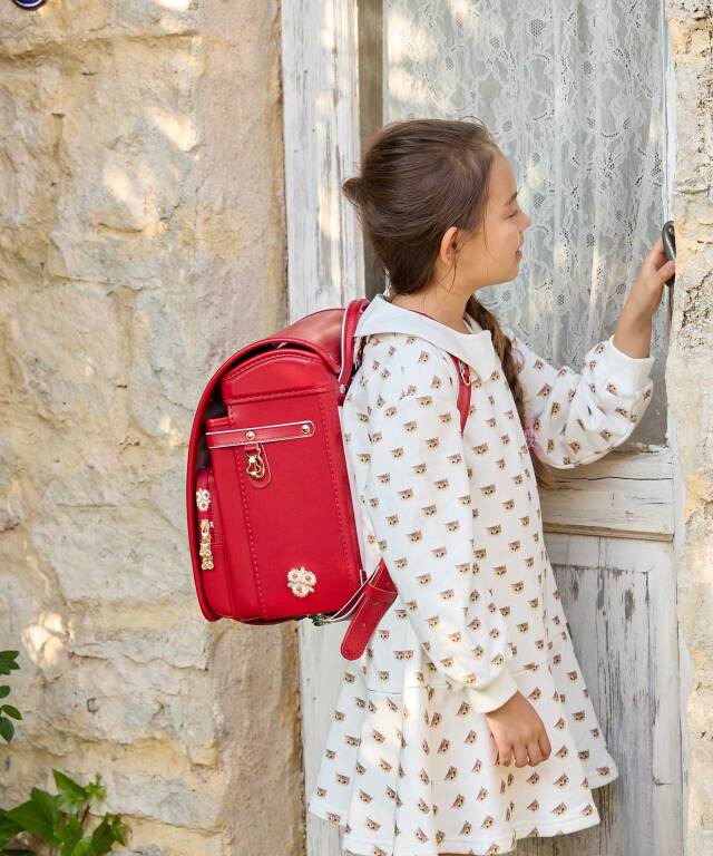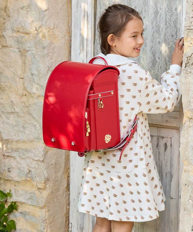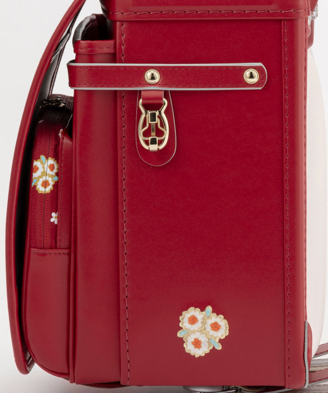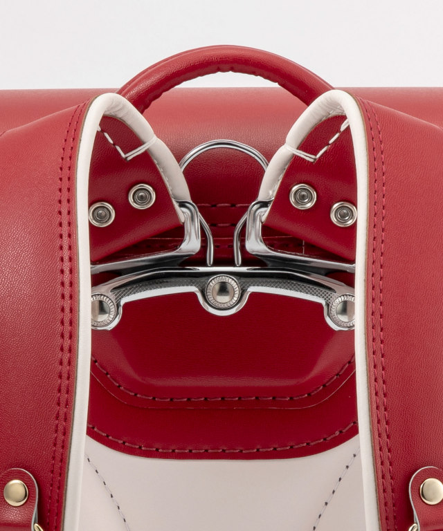 金具を押すだけで自動的に鍵が閉まるミラくるっロック®を搭載。施錠の手間を省き、締め忘れをゼロに。肩ベルト底面のダルマカン部分が左右に動かせる仕様になっているため、成長や体型、服の厚みに合わせてフィットしやすく、背負う際にもらくに腕を通せます。