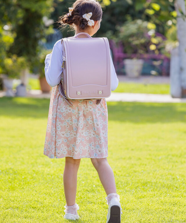 金具を押すだけで自動的に鍵が閉まるミラくるっロック®を搭載。施錠の手間を省き、締め忘れをゼロに。肩ベルト底面のダルマカン部分が左右に動かせる仕様になっているため、成長や体型、服の厚みに合わせてフィットしやすく、背負う際にもらくに腕を通せます。