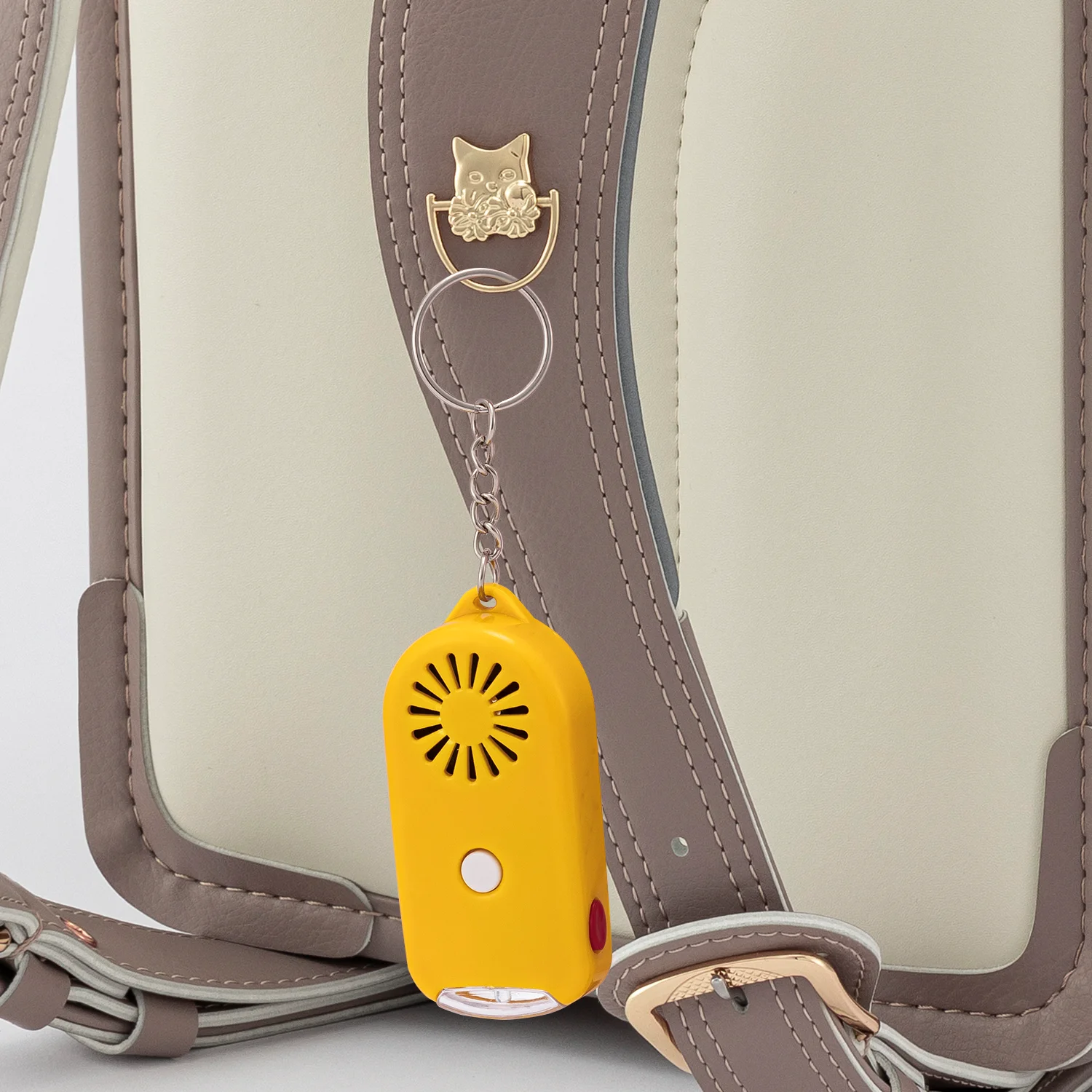 肩ベルトDカン:防犯ブザーに手が伸ばしやすい肩ベルトにDカンを装備。